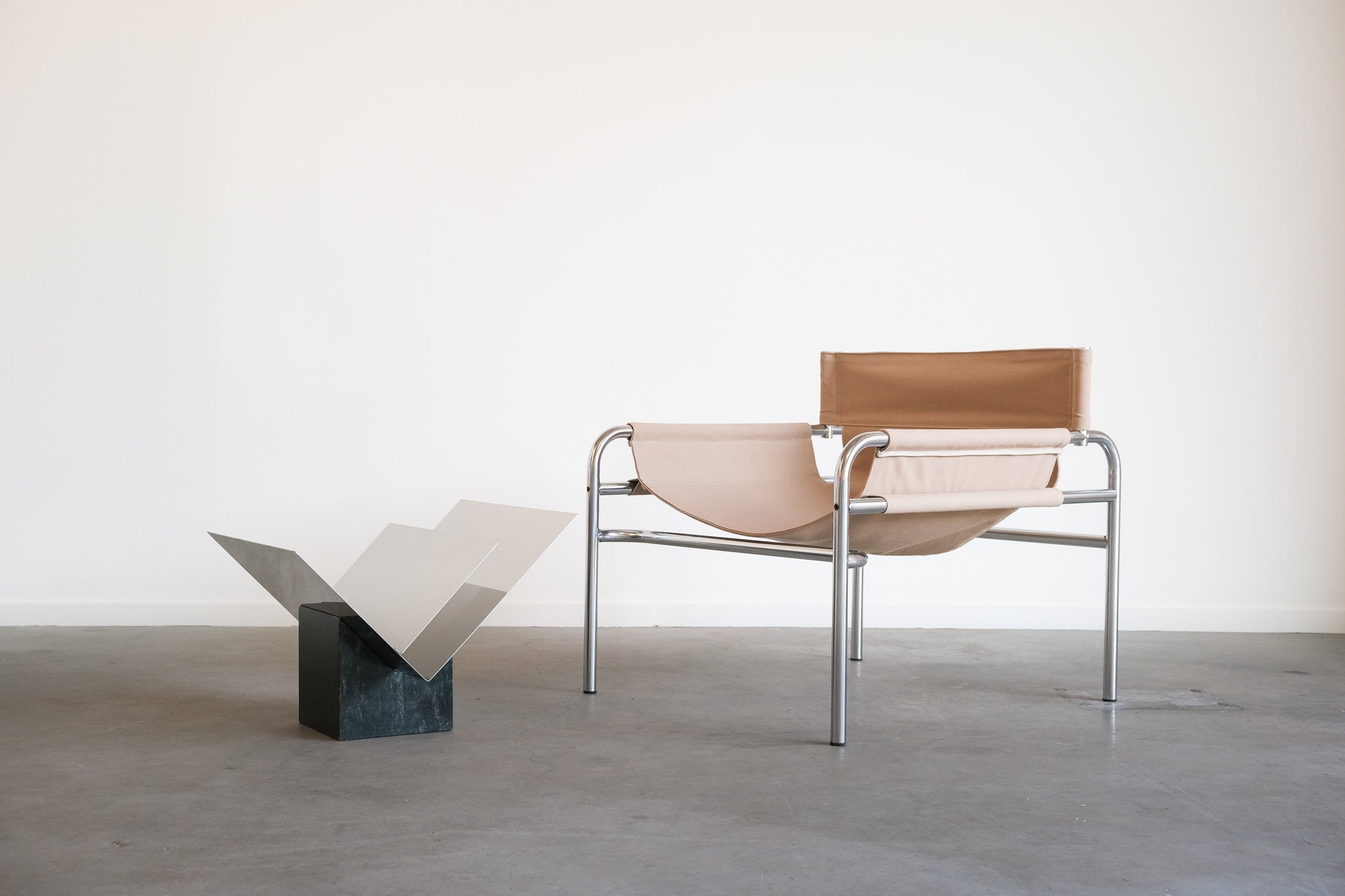 Walter Antonis SZ14 chair with chrome base and canvas seat