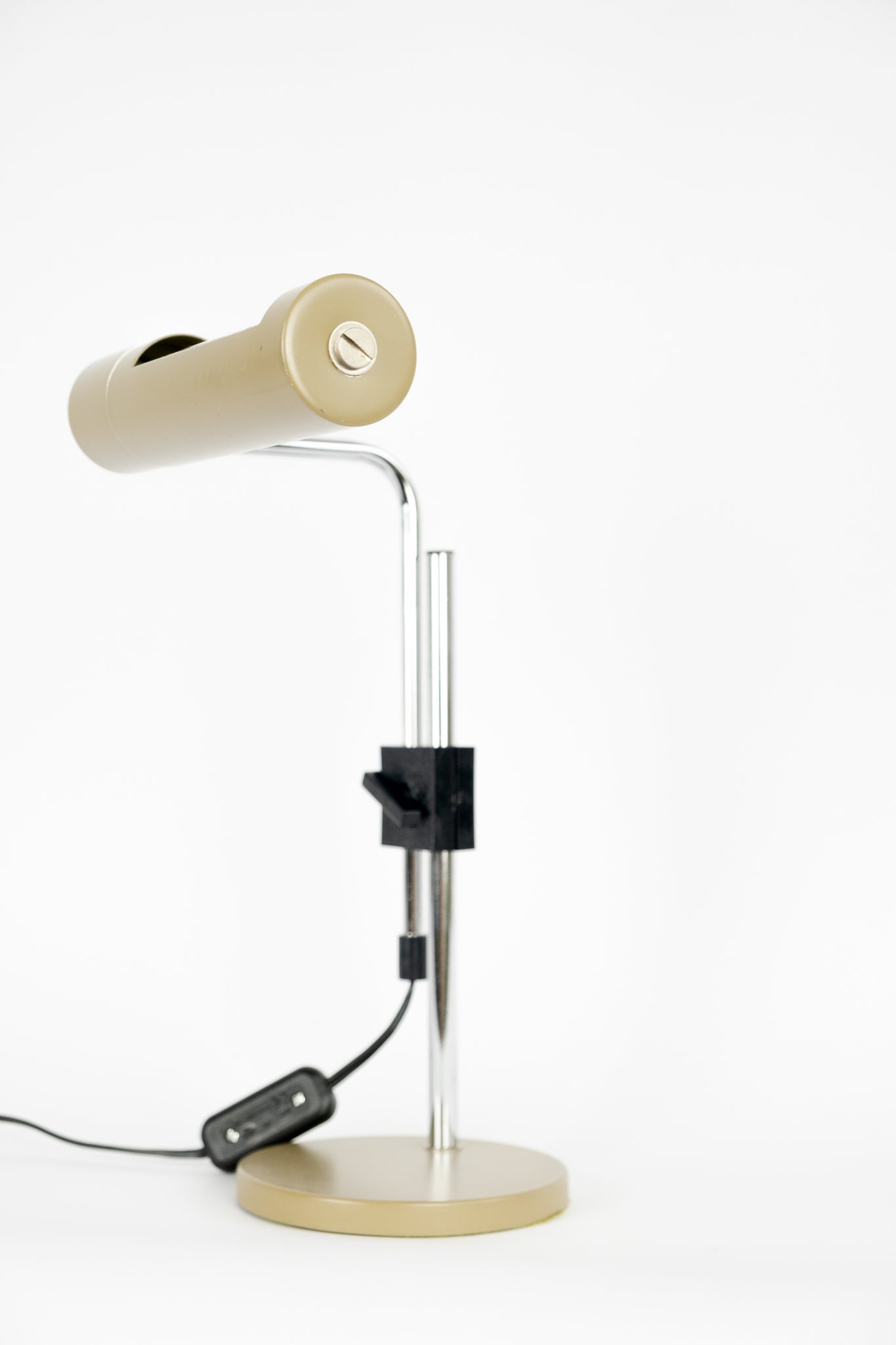 Hala Zeist lamp by Herman Theodoor Jan Anthoin Busquet, who founded the factory in 1932 and became one of the first lighting manufacturers in the Netherlands. This lamp is made of chrome with brown steel and is in very good condition. You can rotate it in all directions and adjust its height. The wiring and switch materials are original.