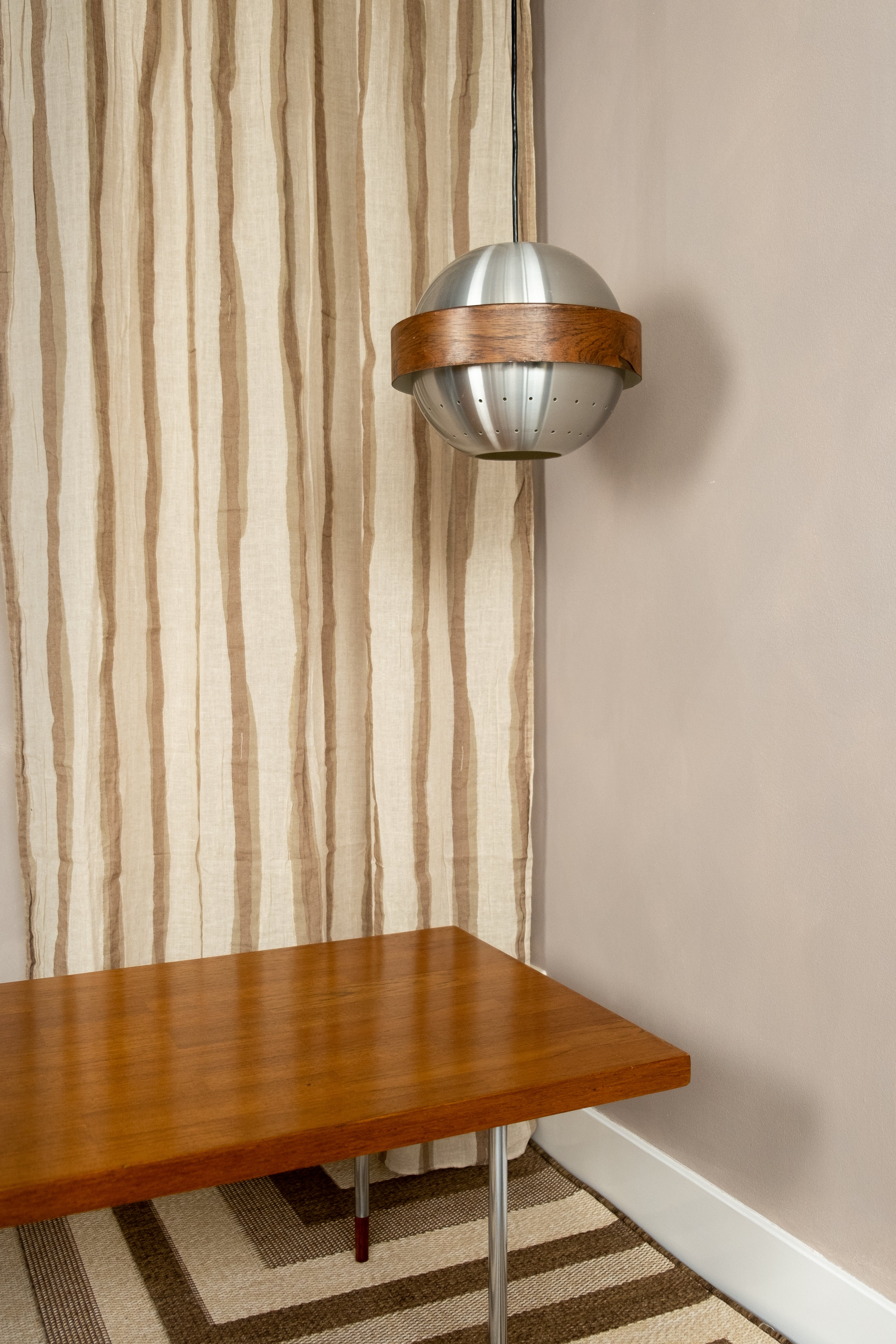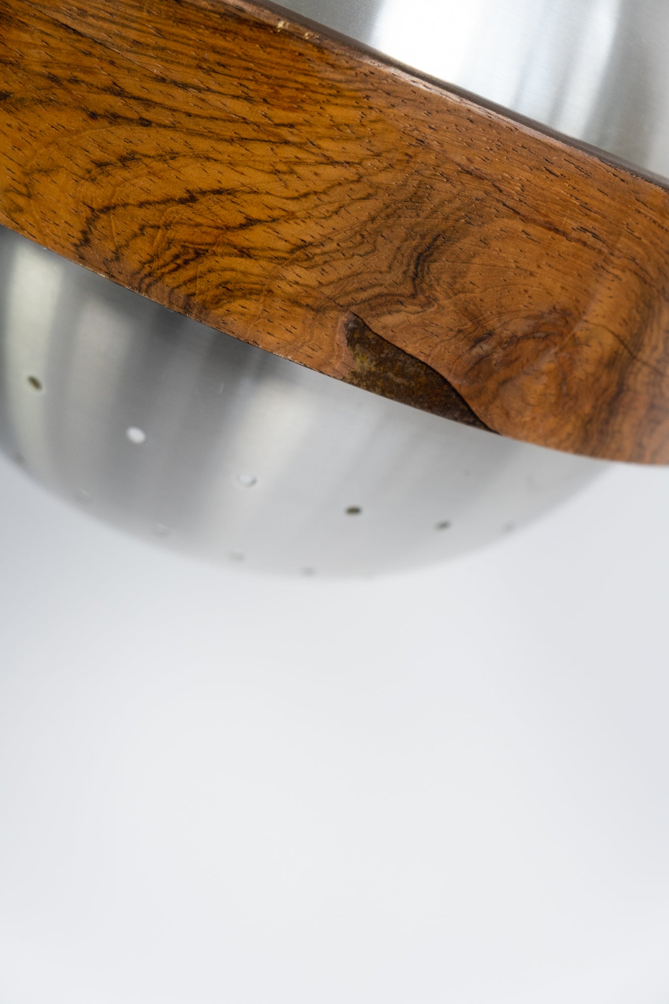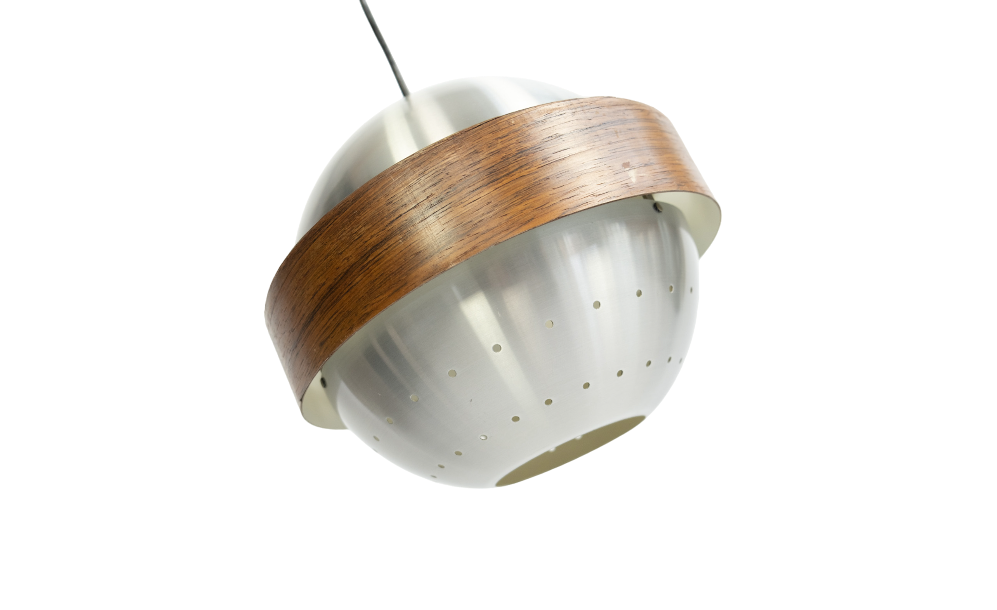 Presumably a Lakro lamp but without the plastic prism stones. The light shines beautifully through the holes at the bottom of the shade. The veneer edge is slightly damaged but otherwise in good condition. The wiring is original.