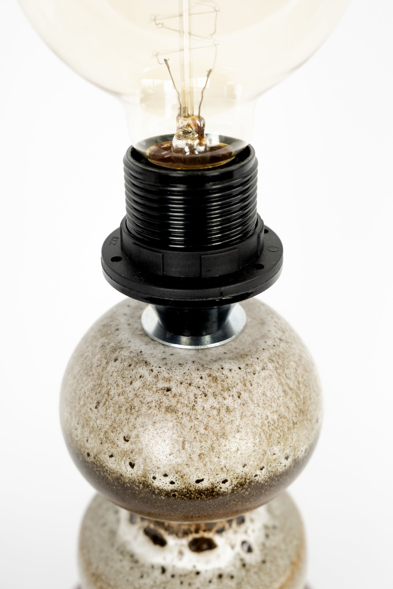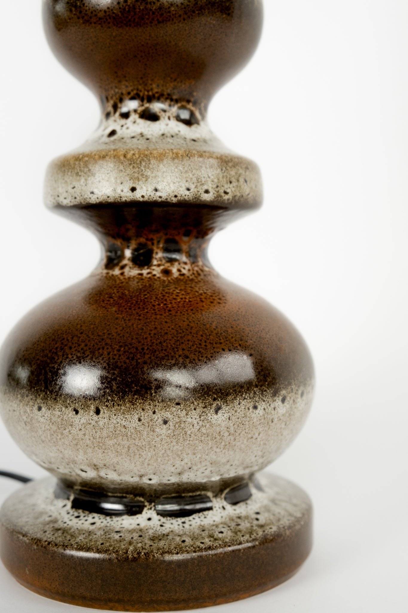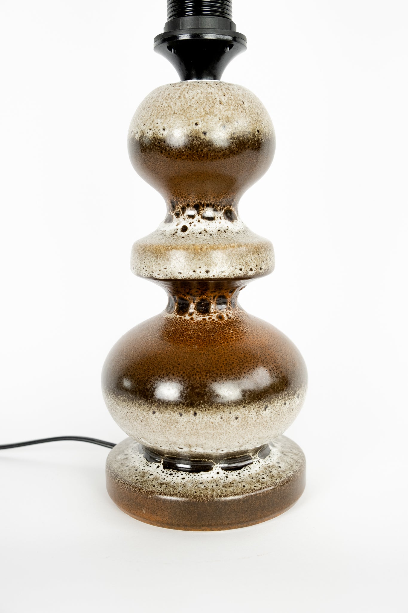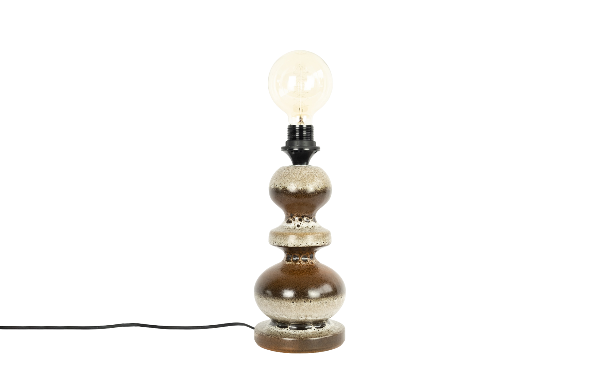 Beautiful retro lamp from West Germany in brown and beige tones. Over the years, it has lost its shade, but it actually looks much better without it. Pair it with a nice large LED bulb and it will brighten up your room. In good condition. Wiring and socket have been replaced.