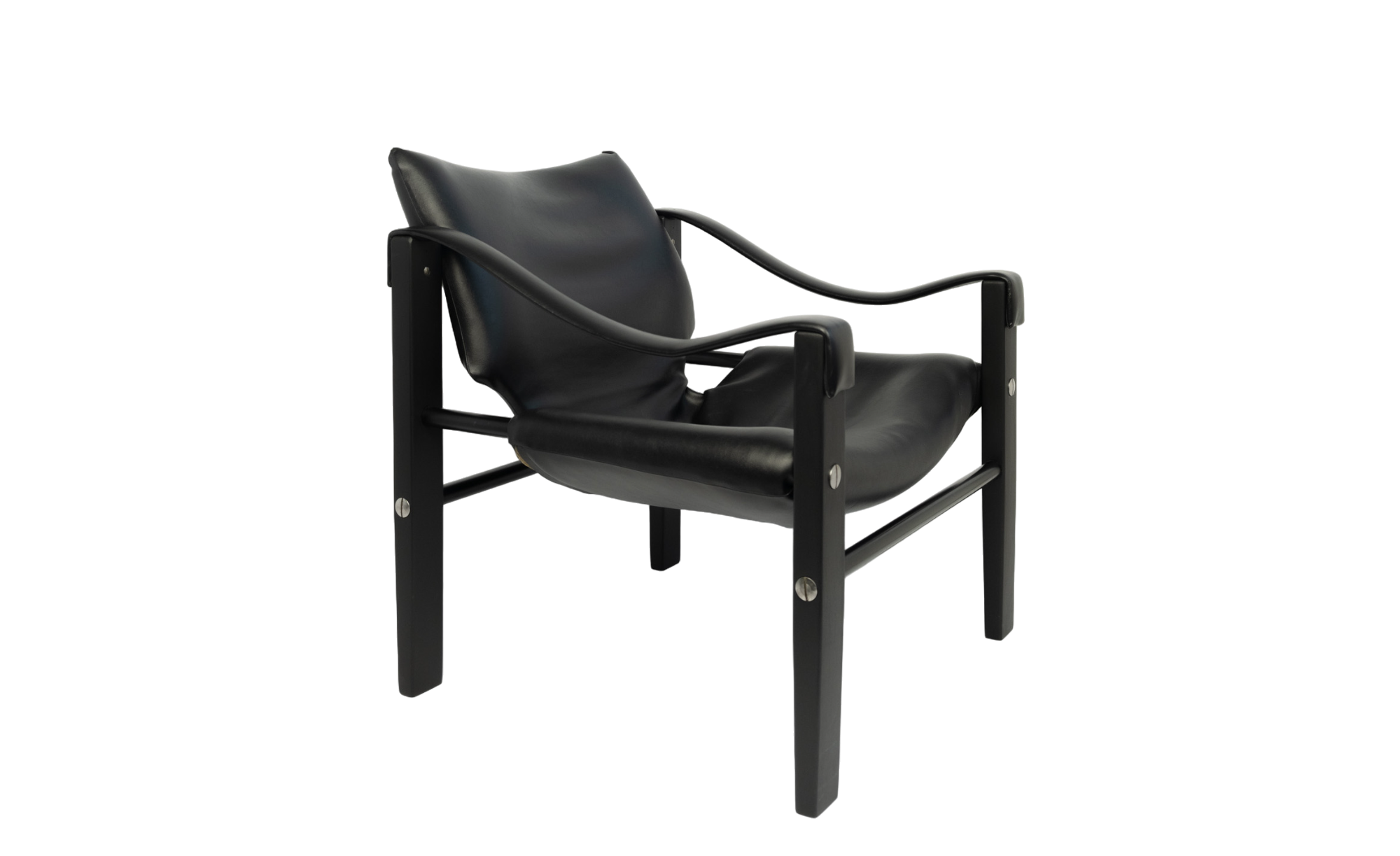 The Safari Sling Chair was designed by Maurice Burke for Arkana in the 1970s and produced in Bath, England. The chair is made of wood and steel, offering great comfort with its relaxed seating. A true eye-catcher in any room! The chair has light signs of use and the original upholstery.