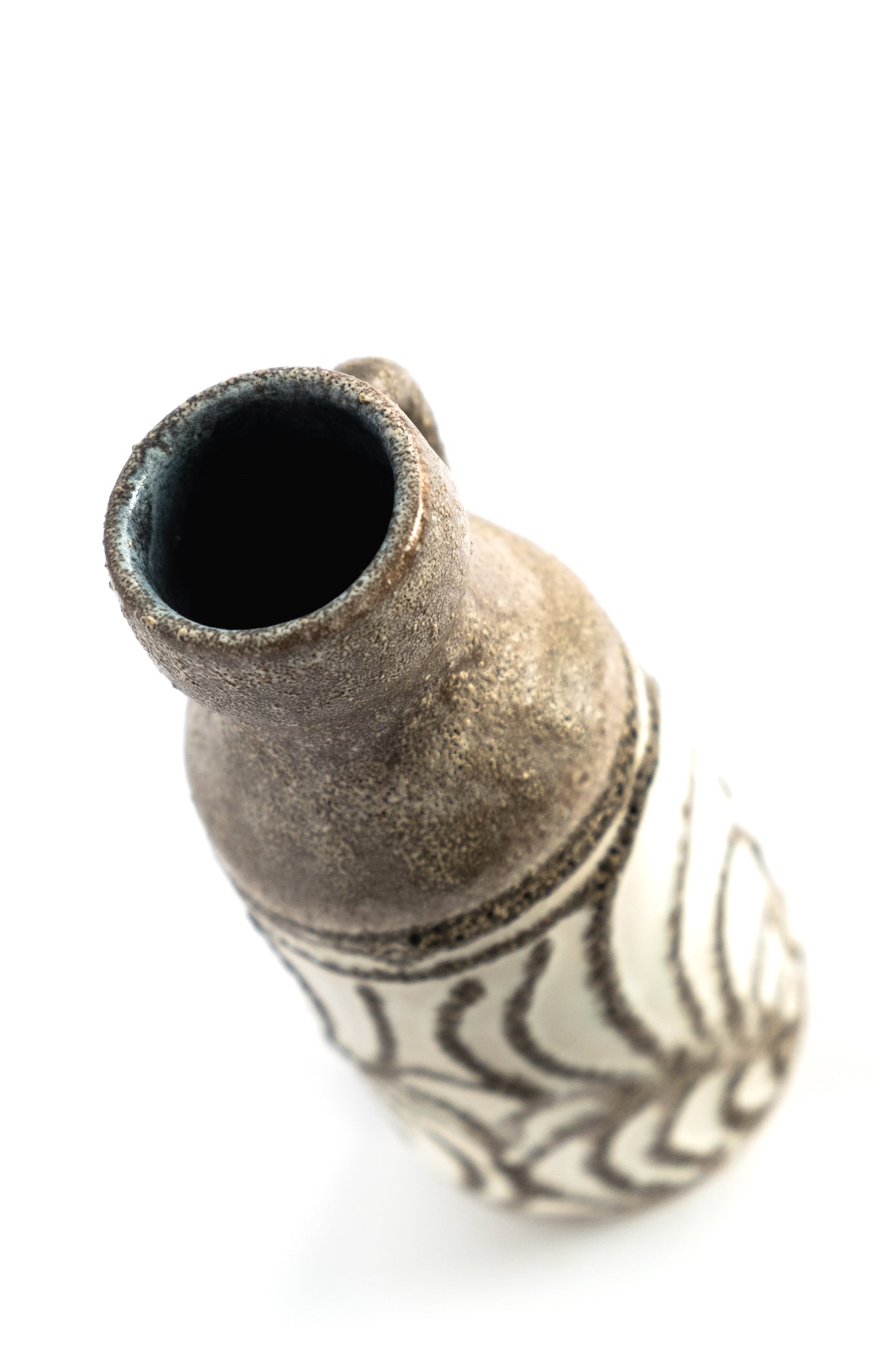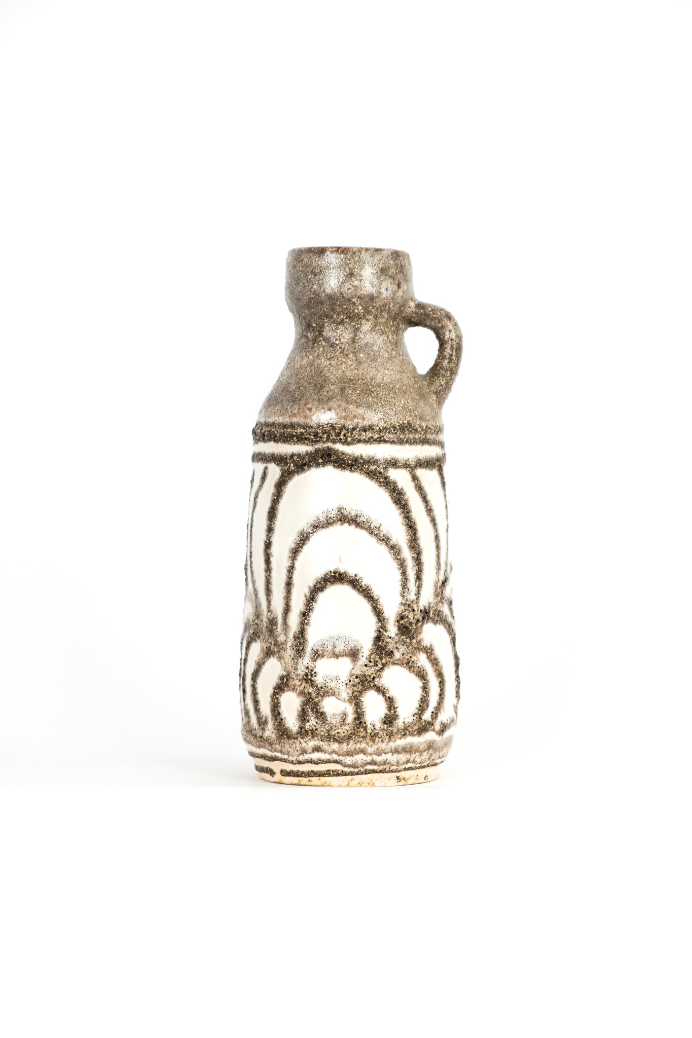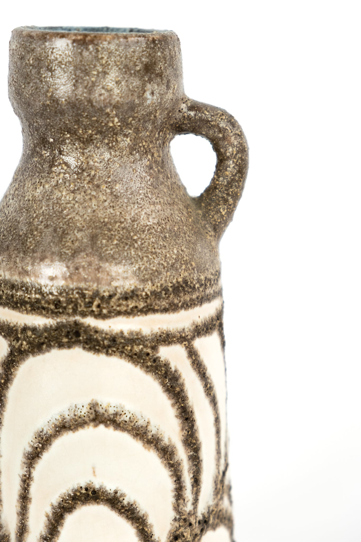 Charming vintage ceramic vase from Strehla, dating back to the 1970s. Strehla was located in Dresden, East Germany. They typically used brown clay, resulting in more subdued colors compared to vases from West Germany. The vase is in perfect condition.