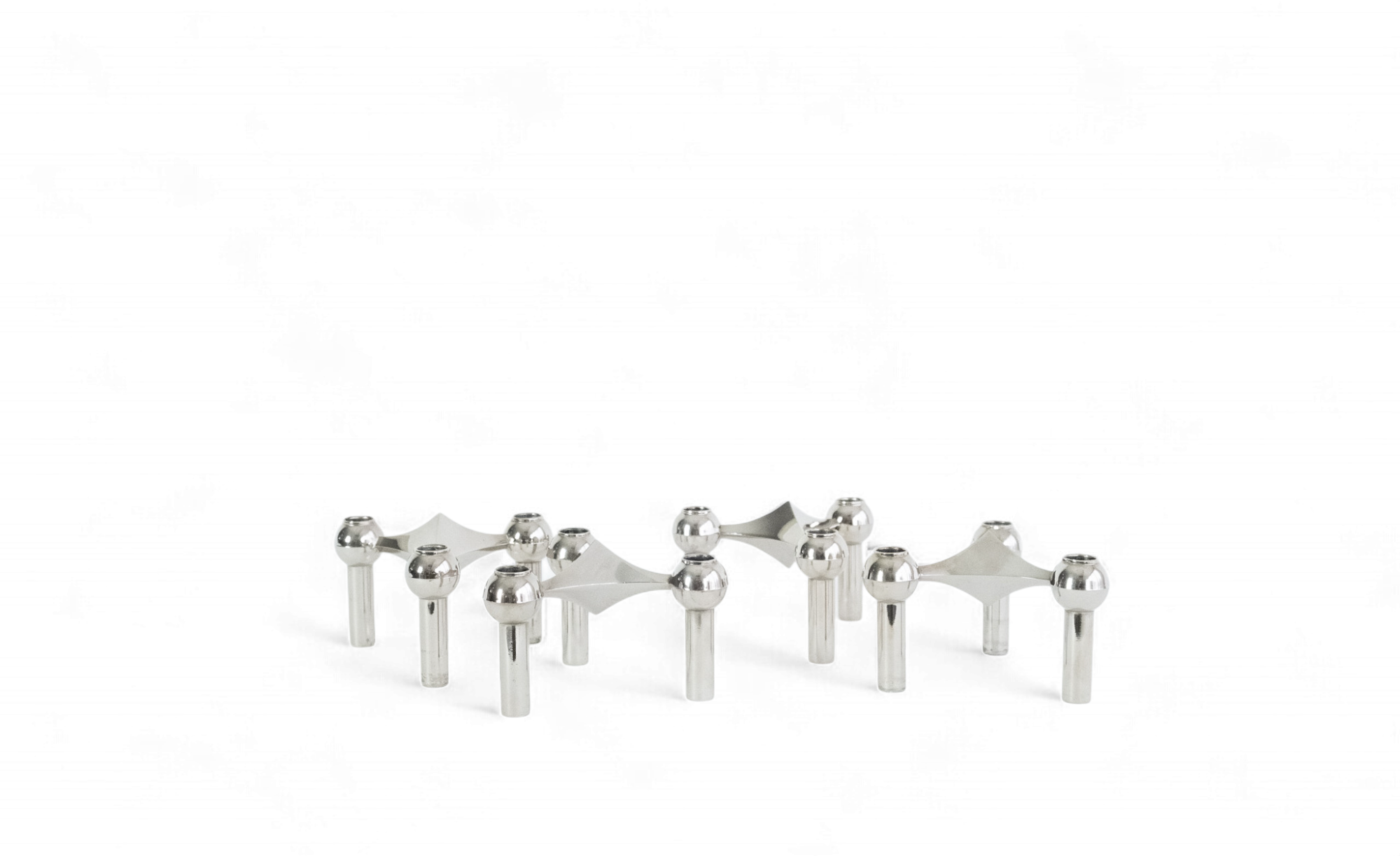 This 'Nagel' candle holder is a true design classic designed by Werner Stoff and Hans Nagel in the early 1960s. The chrome pieces can be stacked according to your taste and resemble a construction set. The candle holder can be used as a styling object or to hold candles.