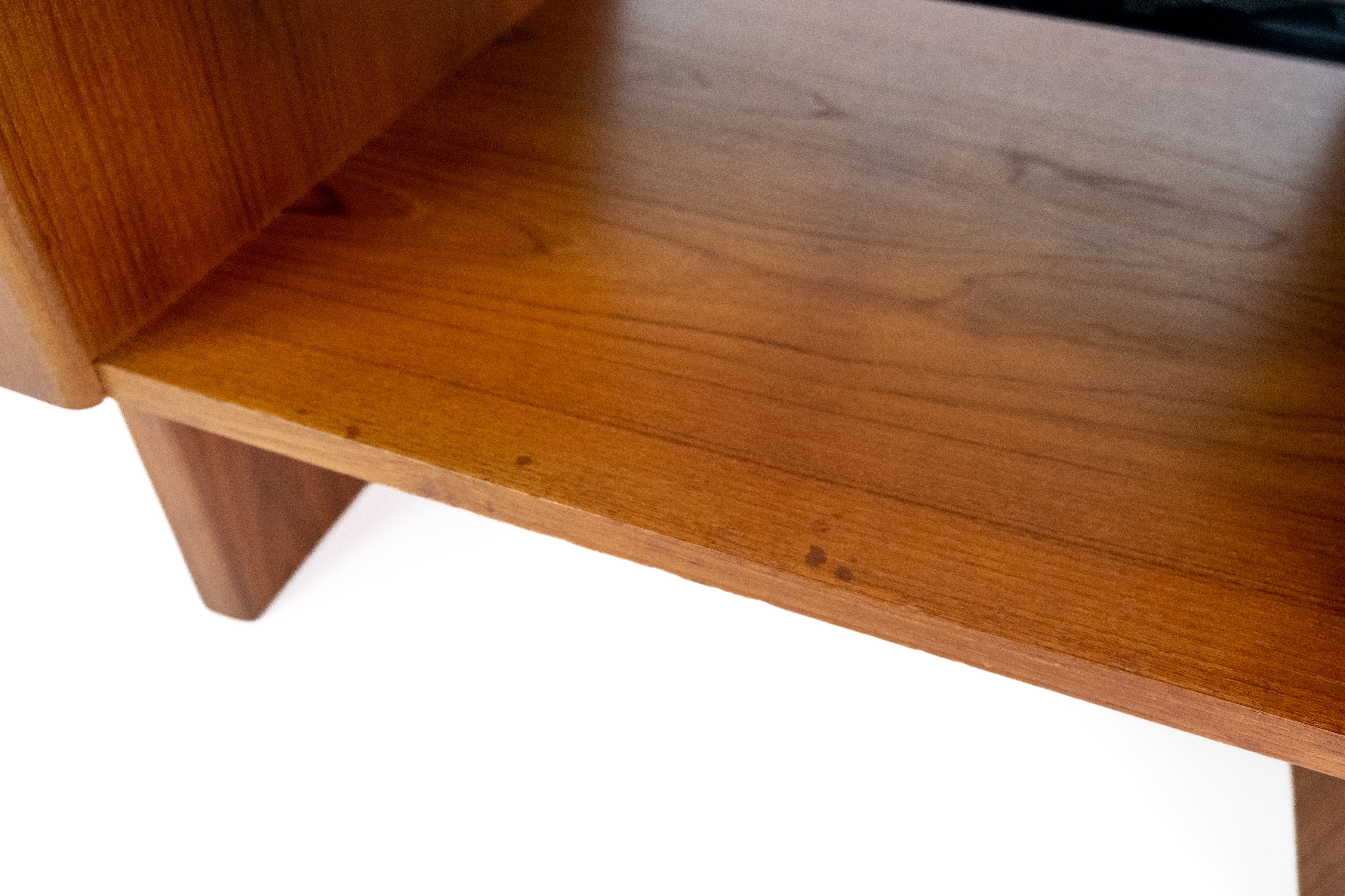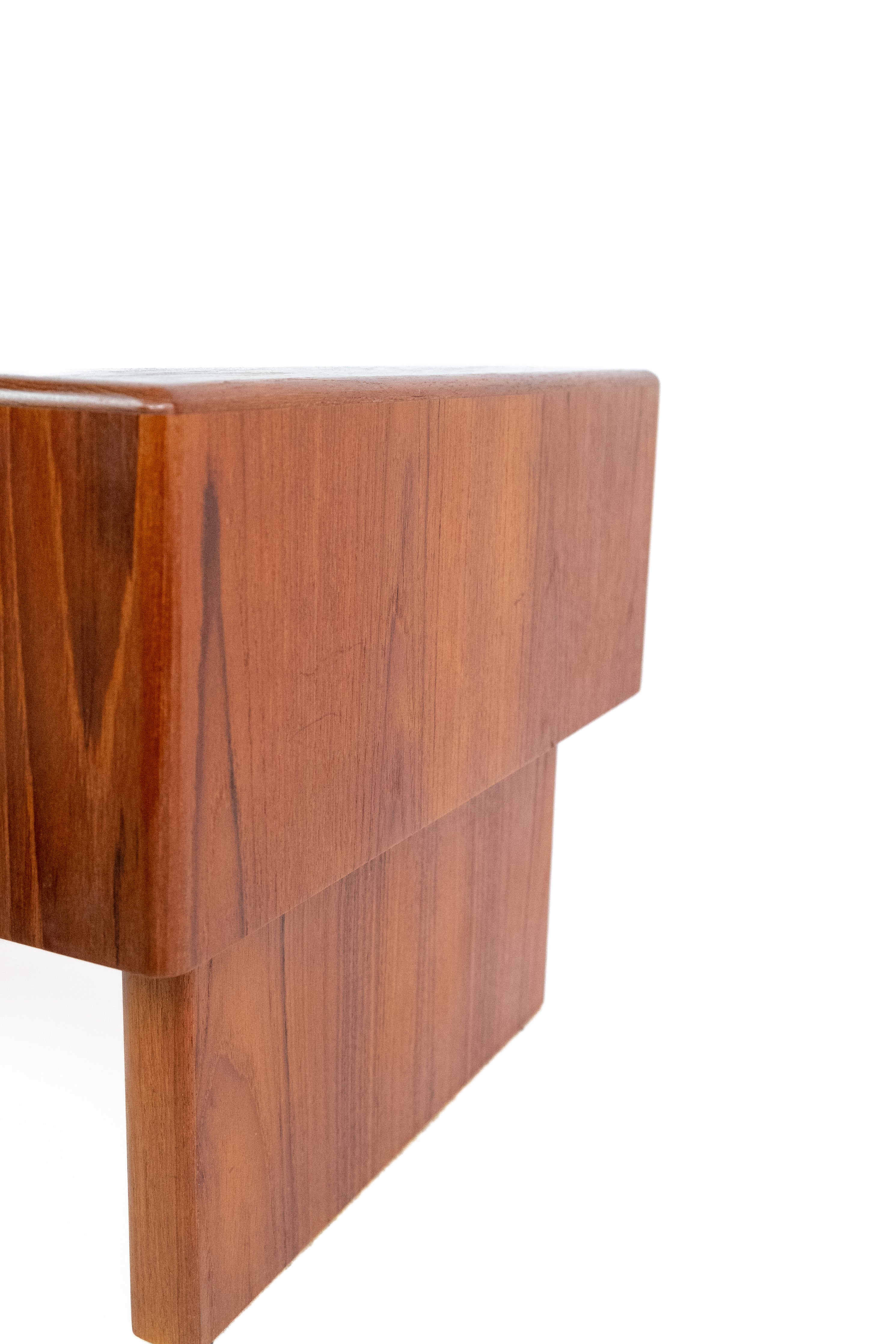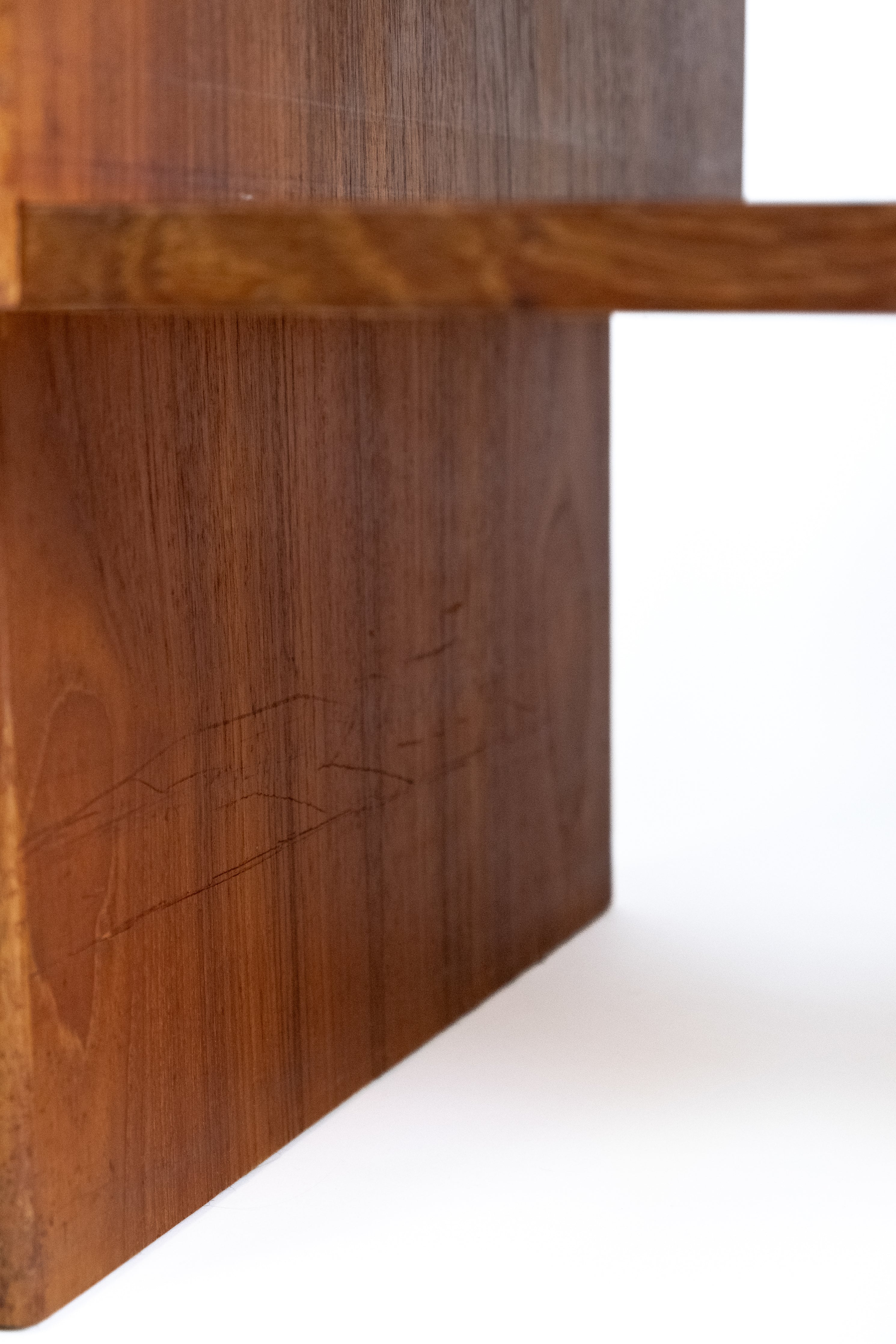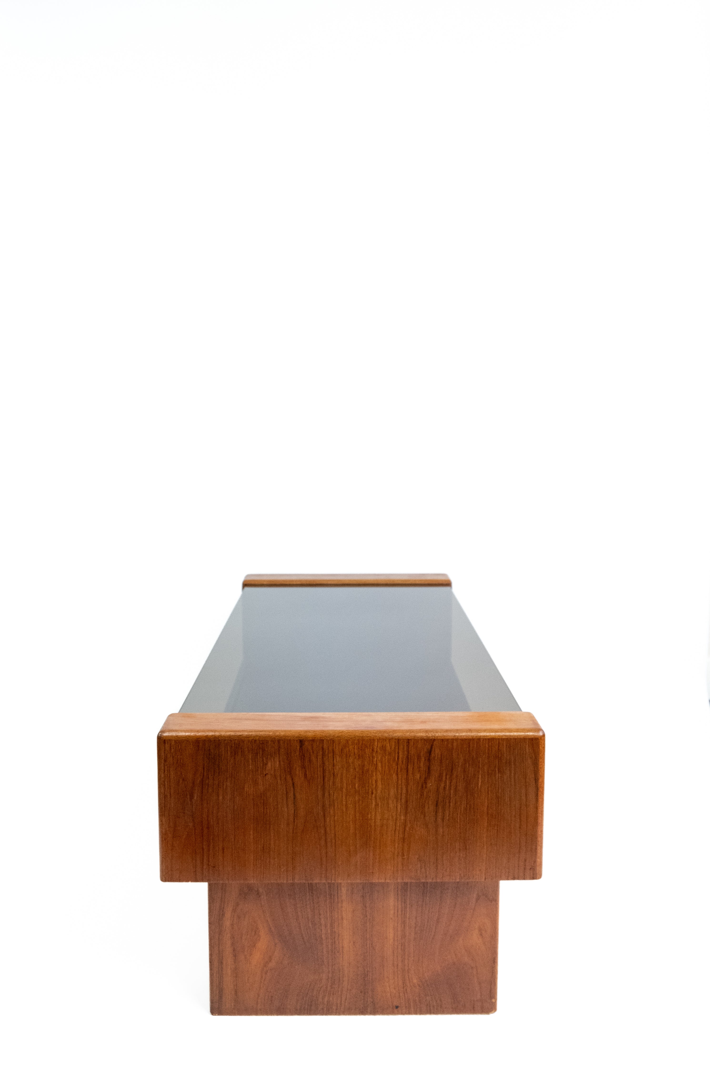 These teak tables from RS Associate Toronto are rugged and sleek in design. They feature rounded corners and smoked glass tops. You can store magazines and books underneath the wooden shelf.