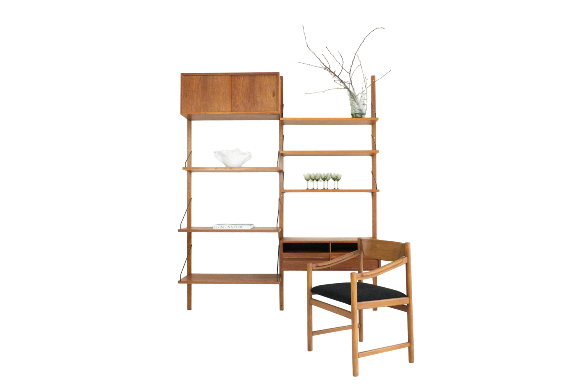 Timeless, minimalist, and sleek in design. An item that leaves a lasting impression in any interior. It can be customized to suit your taste and consists of 2 cabinets and 6 shelves. In good vintage condition with specific signs of use, see photos.