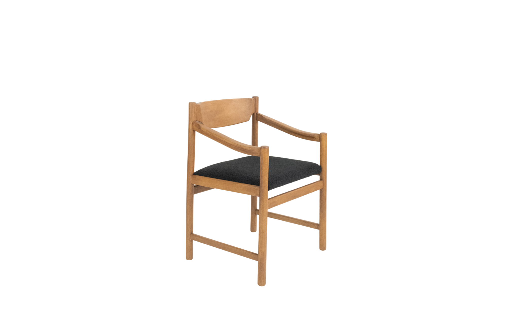 Set of two vintage chairs with armrests, restored and upholstered in a subtle black teddy fabric. They feature elegant armrests that slope from the back to the front legs. In good vintage condition.