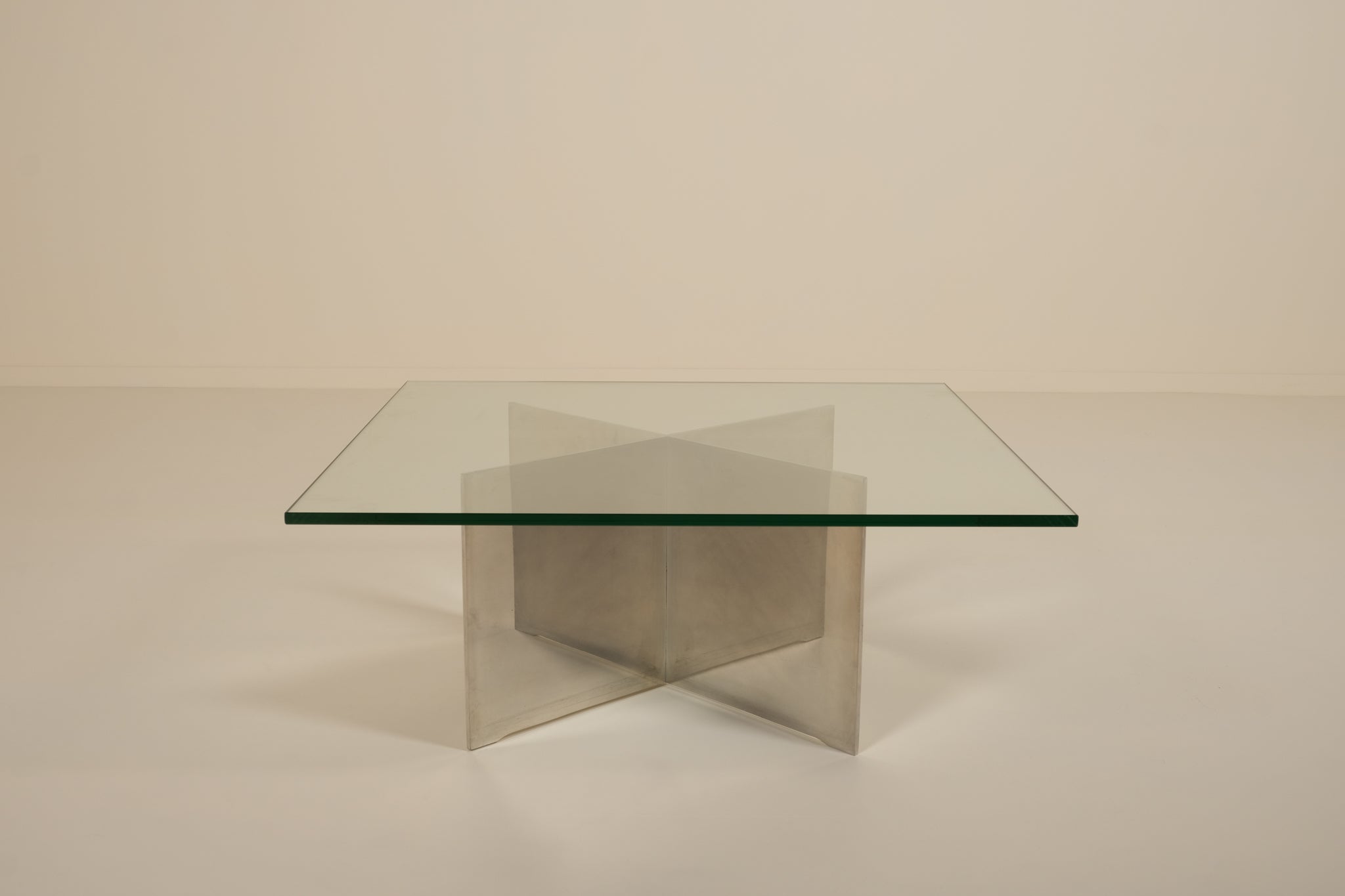Glass Coffee Table with Sculptural Metal Base