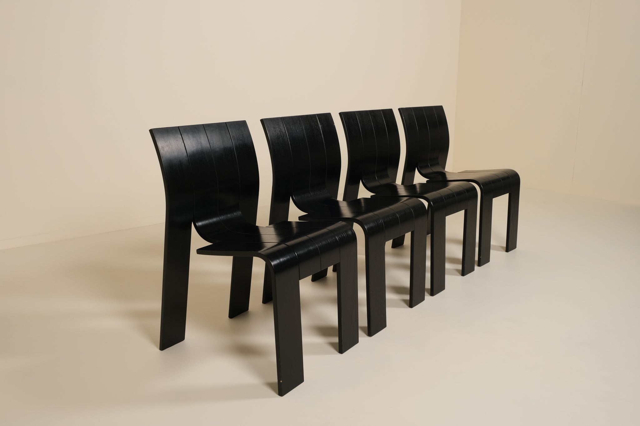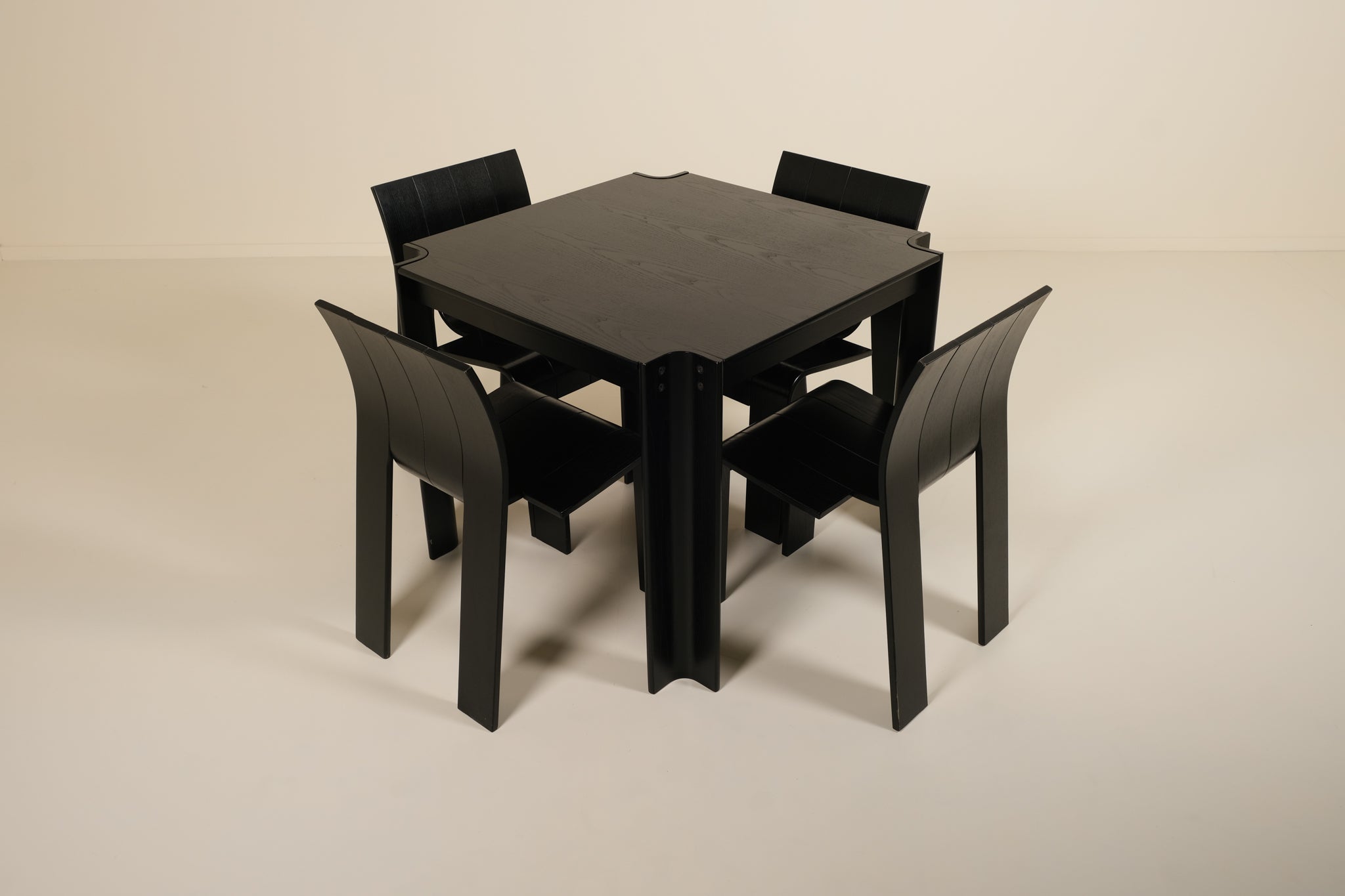 A sharp and graphic dining set by Gijs Bakker for Castelijn, executed in black. Defined by its clean lines and balanced proportions, the design reflects Bakker’s signature approach reduced, functional, yet visually precise.