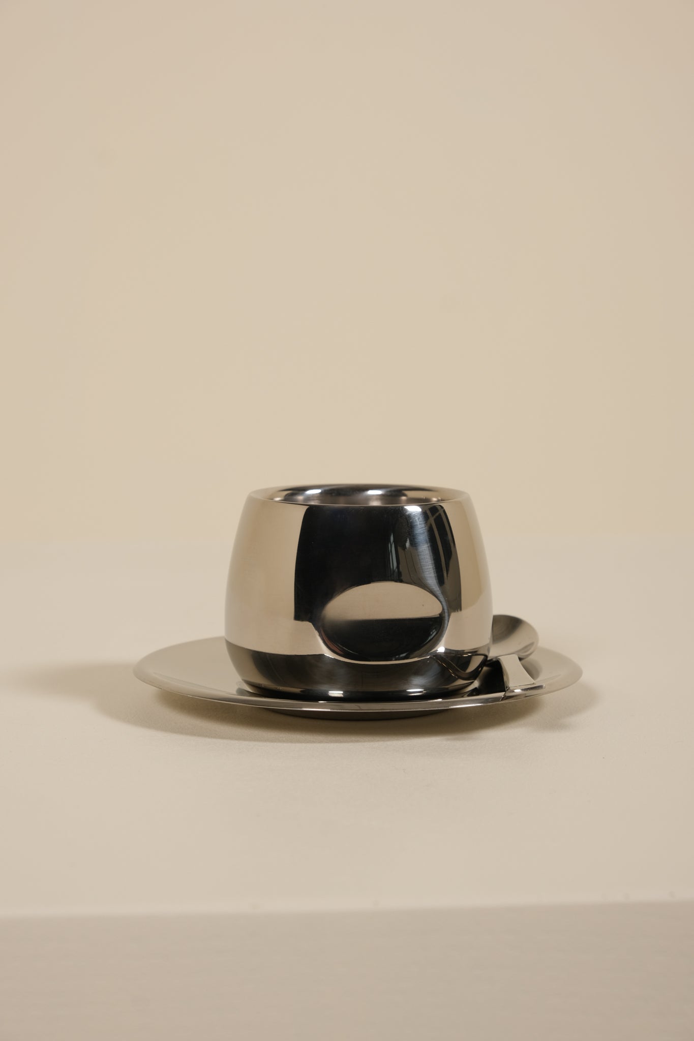These Italian espresso cups from AMC Art Design embodies the sleek, modern style of the 1970s. Crafted from stainless steel with a distinctive double-walled construction, these cups keep your espresso warm while staying cool to the touch. Each piece includes a matching saucer, combining functionality with minimalist elegance. Perfect for collectors and lovers of Italian design, these cups showcase the blend of practicality and style that defines mid-century Italian craftsmanship.