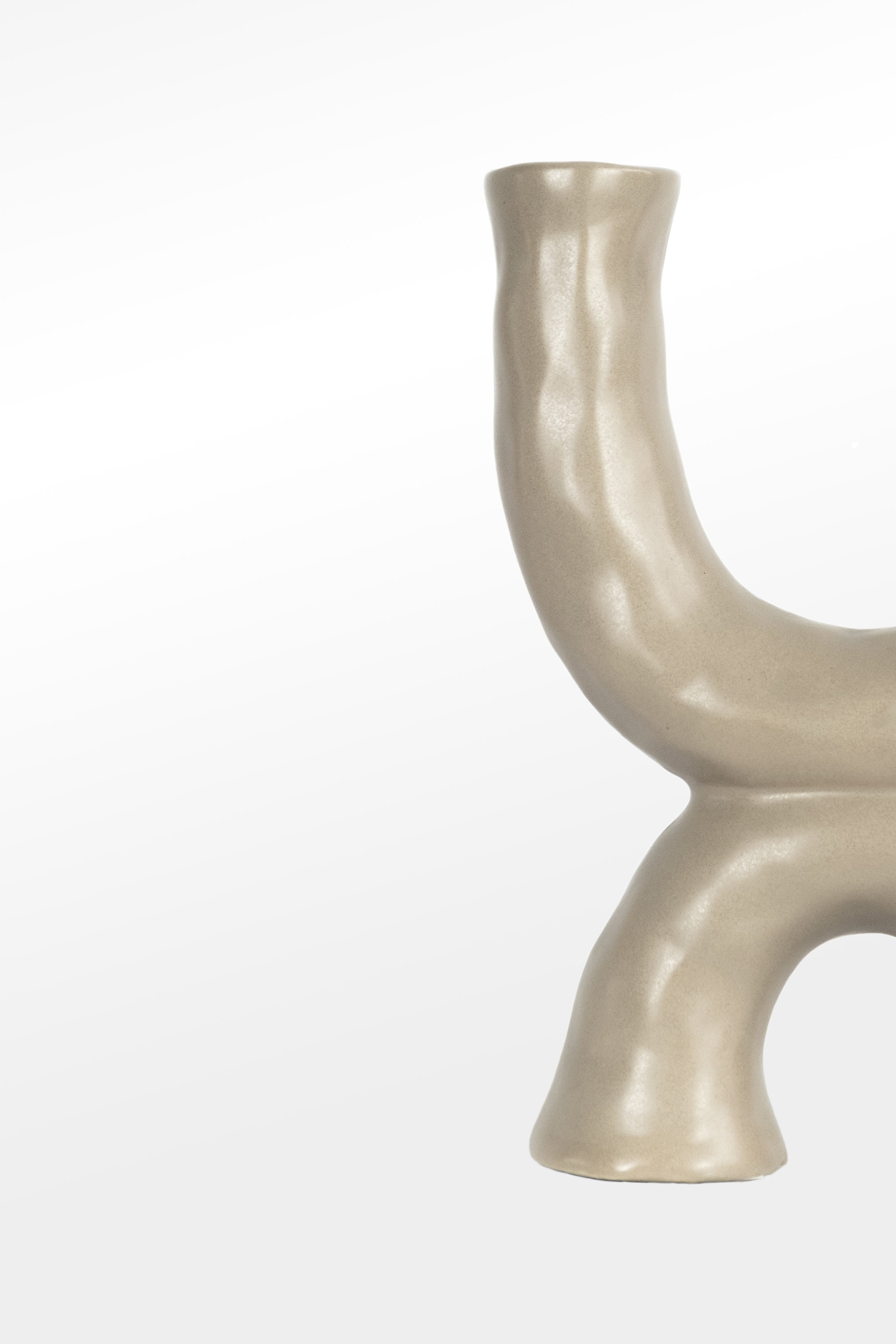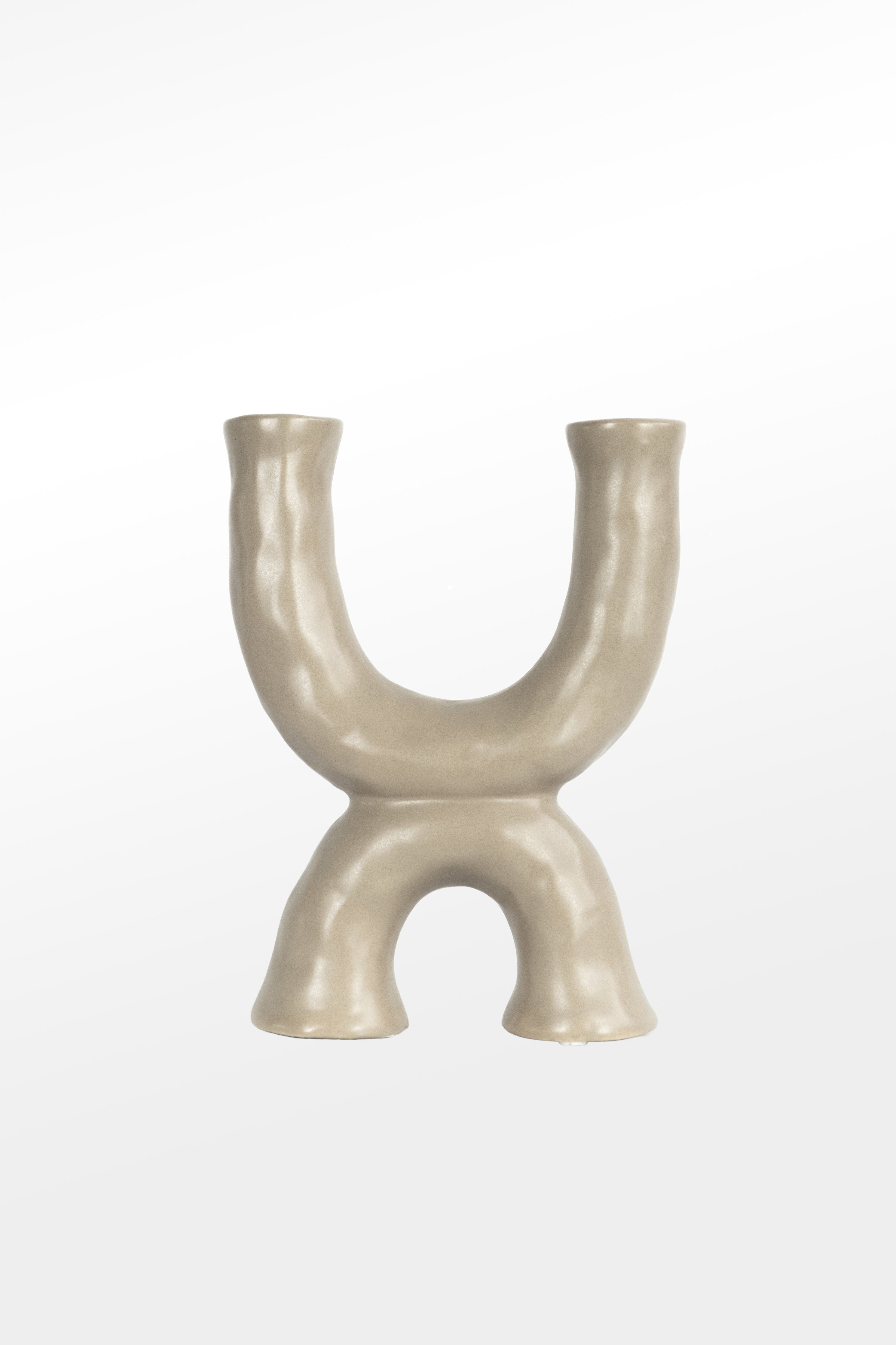 This organic candle holder is a real atmosphere creator in your home. With its round shapes, it's already charming on its own, but with two beautiful candles inside, it becomes extra cozy! This is the small variant.
