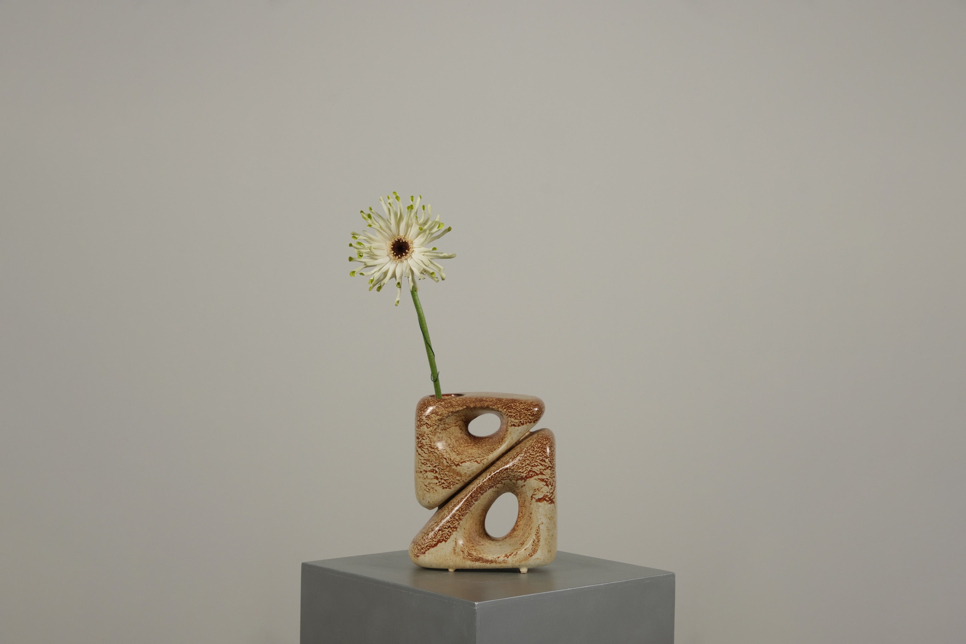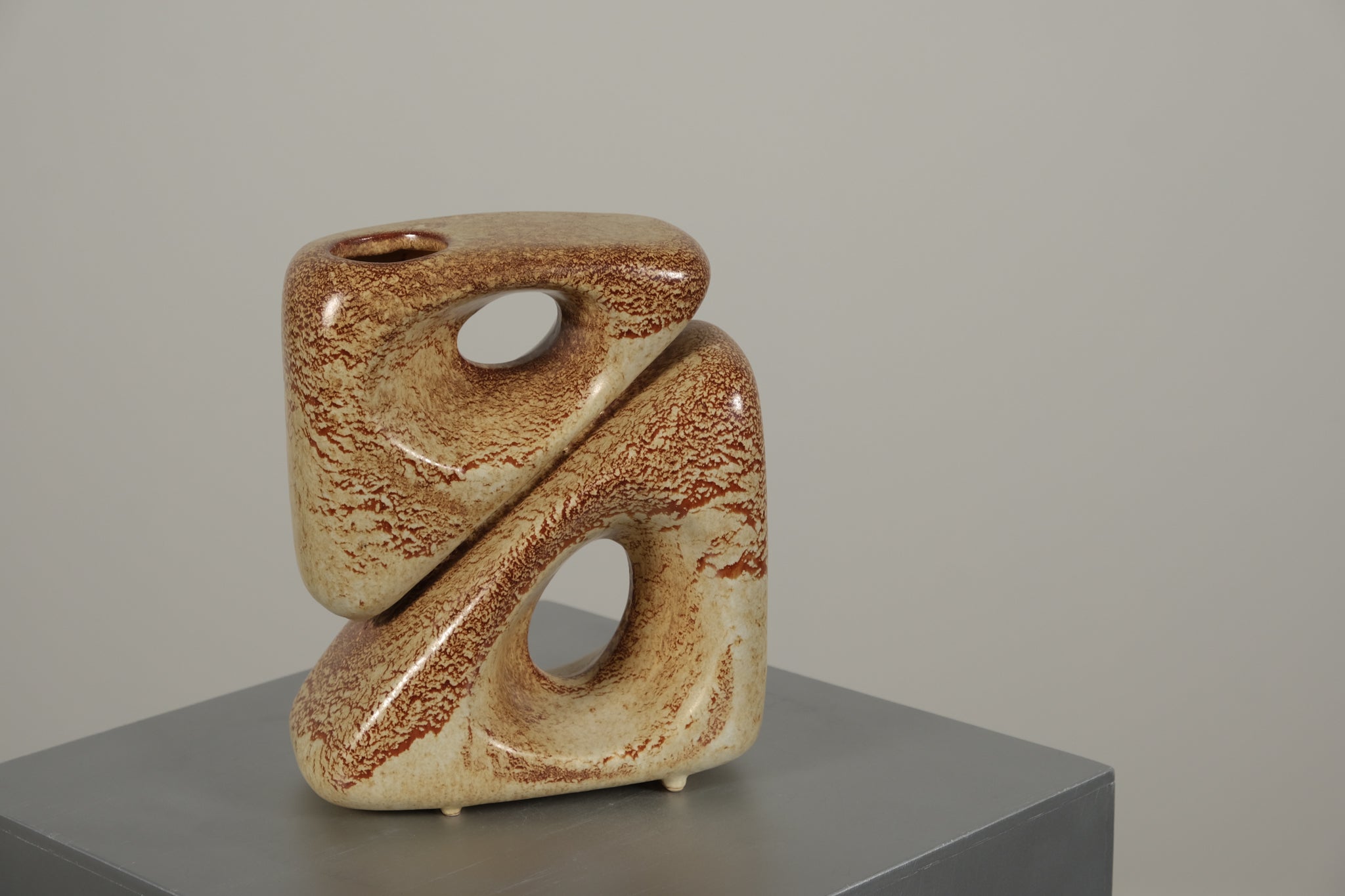 A striking mid-century ceramic vase designed by Roberto Rigon for Bertoncello Ceramiche d’Arte. Handmade in Italy, this sculptural piece features an iconic perforated design, exemplifying the elegance and creativity of mid-century modern ceramics.