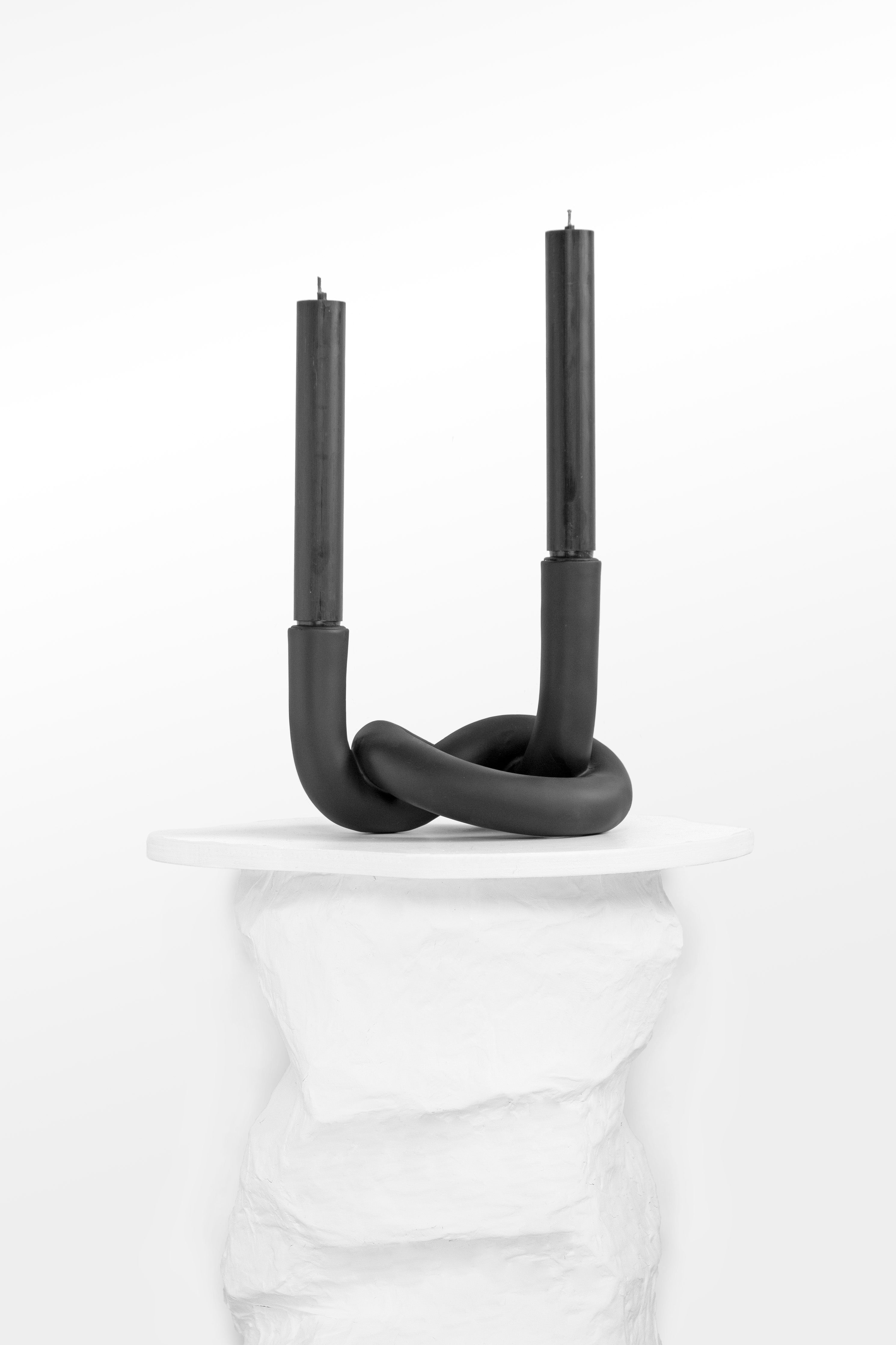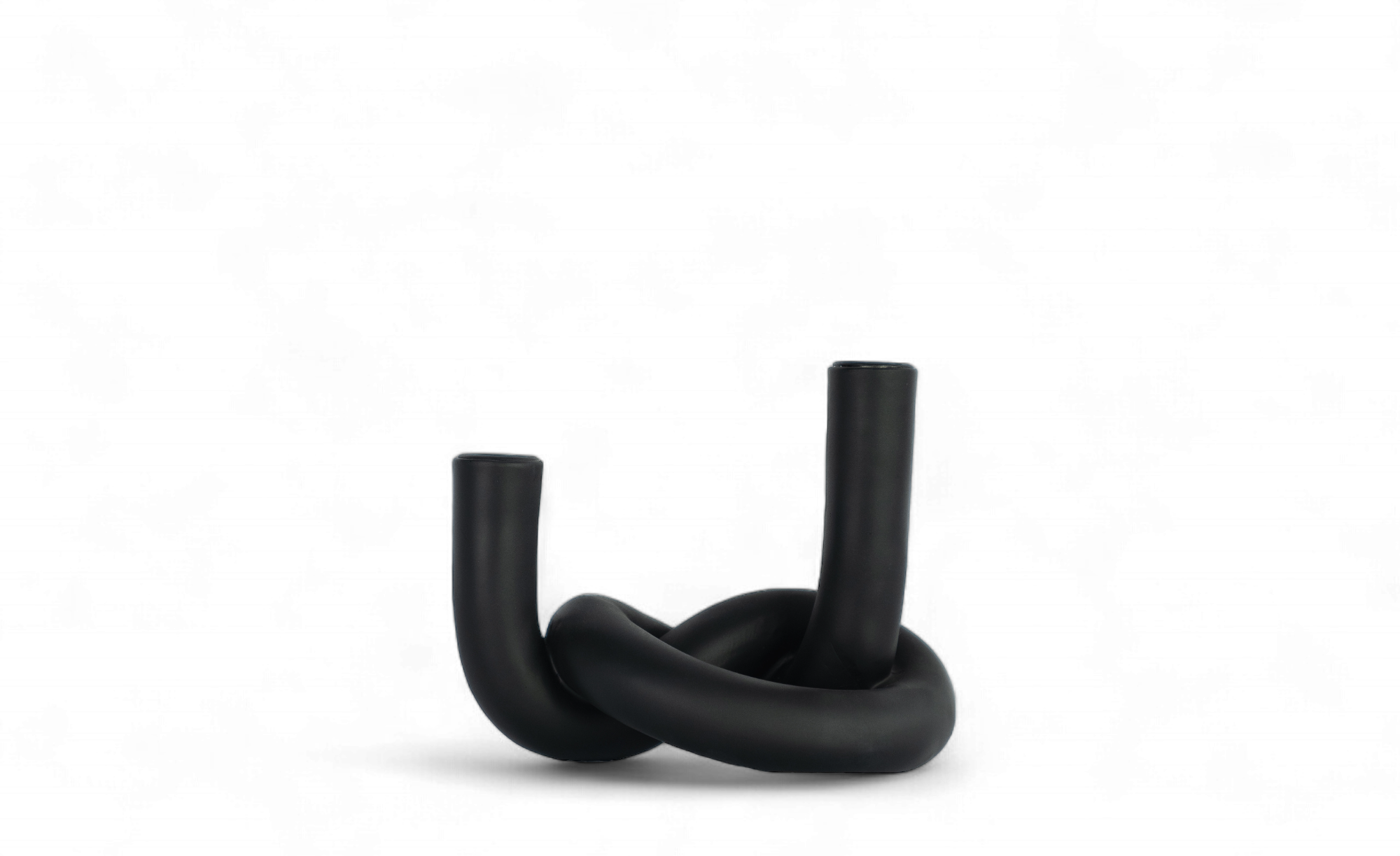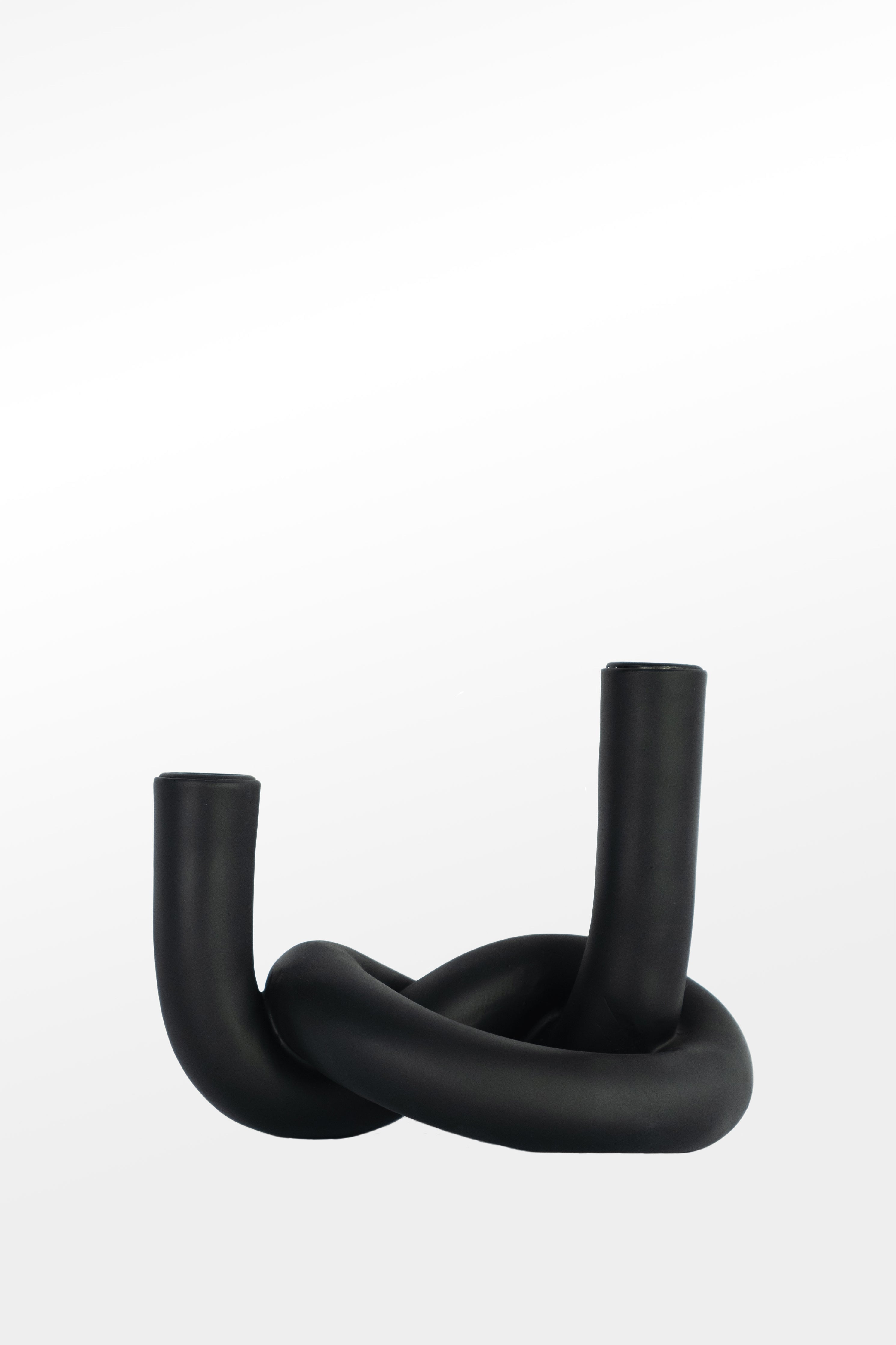 Grappige knoop kandelaar in het altijd mooie zwart. Een echte eyecatcher!