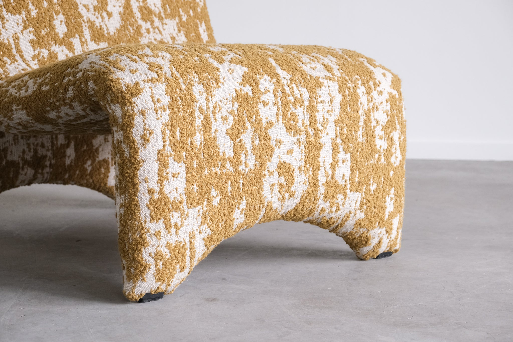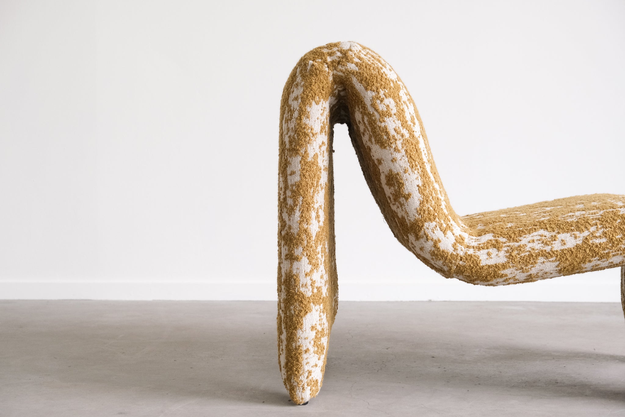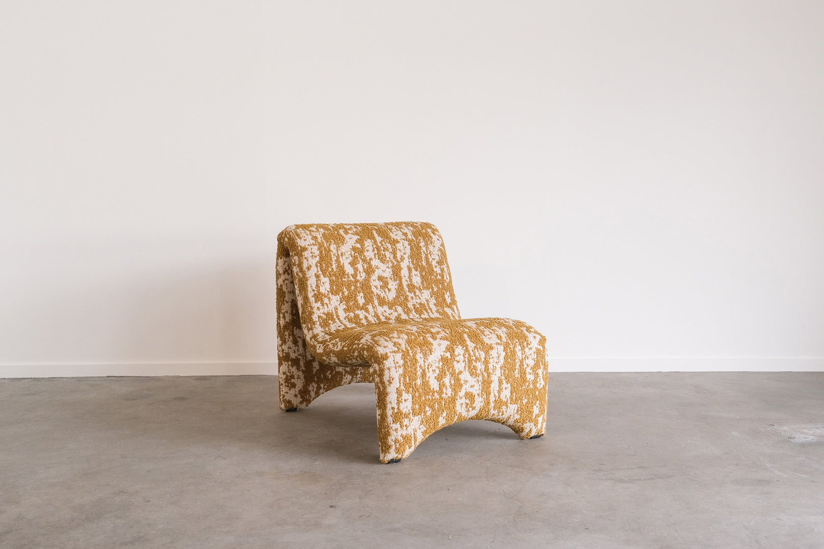 Met zijn zachte vormen en opvallende textuur brengt deze loungestoel warmte en karakter in elk interieur. De ronde lijnen en het lage profiel geven een ontspannen gevoel van comfort, een ontwerp dat tegelijk speels en elegant is.
